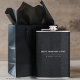 Um presente elegante e sofisticado para qualquer profissional, este frasco preto personalizado apresenta um fundo texturizado e uma linha de gradiente prateado limpa que separa o nome ou a firma do título. Personalizado com o nome e o ano do destinatário no fundo, ele faz um presente pensativo e na moda para advogados, formandos de Direito ou colegas em qualquer área corporativa. Seja para celebrar marcos ou adicionar um toque refinado a um carrinho de bar, este frasco combina design moderno com encanto pessoal.