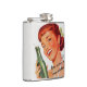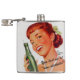 Cabeça vermelha retro que guardara uma garrafa da soda com slogan engraçado.