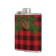 Um padrão clássico de xadrez vermelha e preta com detalhes de pinecona.