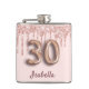 Um presente dos amigos para uma aniversário de 30 anos feminina e glamourosa. Um rosa claro, fundo cor-de-rosa com gotas elegantes de ouro rosa, pintura gota-a-gota. O texto: O nome é escrito em ouro rosa escuro com uma escrita de estilo moderna, escrita à mão. Personalize e adicione um nome. O número 30 é gravado com uma fonte no estilo do balão rosa dourado. Voltar: seu texto e seus nomes.