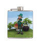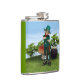 Renderização digital em 3D de um duende em pé perto de um pote de ouro, cogumelos e shamrock. Presente perfeito para o Dia de São Patrício
