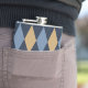 Elevate groomsmen gifts or personal milestones with this custom argyle monogram flask. Crisp diamonds wraps seamlessly around the 8oz stainless steel body, framing a bold vertical name and date on the back— centered for a sleek, tailored look.