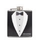 Frasco de bebida para padrinho com terno preto e gravata borboleta. Pegue um para cada um dos seus padrinhos e personalize com o nome de cada um.
