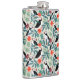 Padrão Puffin colorido e divertido com muita folhagem verde e exuberante sobre fundo bege quente. Cor verde e laranja vibrantes.
