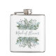 Este frasco verde-rústico contém a expressão "Madrinha de casamento" na letra verde-senada moderna, enquadrada acima e abaixo por folhagem de aquarela e bagas em tons sutis de verde, cinza e azul.