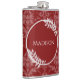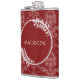 Aproveite as suas bebidas alcoólicas favoritas a qualquer momento com um "Red Elegant Damask Vinyl Wrapped Flask". O Flask design apresenta um elegante fundo úmido e espaço para adicionar o seu nome enfeitado com folhagem delicada. Itens de presentes adicionais disponíveis com este design também.