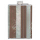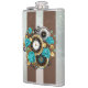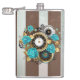 Relógio antigo e patenteado, adornado com joias, mãos de ouro e algarismos latinos com rosa de turquesa sobre fundo castanho e listrado. Estilo Steampunk.