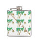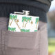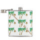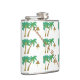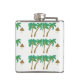 Mosaico, desenho gráfico, de uma ilha, com dois coqueiros, e cabana, mostrados com a frase "Summering In The Tropics" - em cores de verde, amarelo, turquesa, azul, esticado, marrom e preto.
