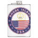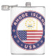 Crachá Rhode Island de Rhode Island com bandeira de Rhode Island e bandeira dos EUA, forma arredondada. Emblema de Rhode Island. Selo de Rhode Island. Coleção dos Estados Unidos.