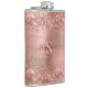 Este elegante Flask apresenta fundo de metal escovado rosa dourado com bordas cintilantes Faux-Glitter. Adicione seu nome e inicial para um toque pessoal.