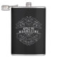 Frasco de na moda para amantes de luar apresenta uma etiqueta fictícia de cor da maçã Apple Pie em cinzas brancas/leves sobre fundo preto.