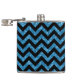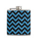 Hip e Trendy Chevron Glitter Look Flask. Este frasco legal apresenta um padrão de zag em forma de guiões em cima de um fundo azul de brilho digital.