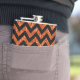 Hip e Trendy Chevron Glitter Look Flask. Este frasco legal apresenta um padrão de zag de zague em forma de glitter laranja, em forma de chevron, sobre um fundo de brilho laranja digital.