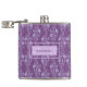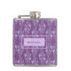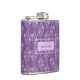 Bonito e na moda personalizou a garrafa anca com um teste padrão floral do lilac decorativo e um fundo roxo luxúria.