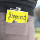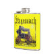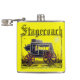 Uma Velha Estagnação Ocidental russa mais escura fica sob uma paisagem desértica ao sol em um caminho de sujeira desolada entre os cactos, enquanto os pássaros sobrevoam. O antigo treinador negro de imagem do Oeste, em fundo amarelo, com uma borda de arame farpado ao redor da borda externa da imagem, acrescentando uma persona áspera e uma borda afiada do que era um dos modos de transporte do Velho Oeste. Fragmentação de texto acima da imagem em letras antigas.