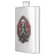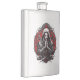 Minha arte retrata uma figura que combina elementos do misticismo e da arte gótica, apresentando um personagem central com uma expressão serena, mas intensa. A mulher vestida de roupão encapuzado. A pele dela é pálida, quase branca, dando-lhe uma aparência etérea. Ela tem as mãos amarradas em um gesto de oração, enfatizando um sentido de contemplação ou ritual. O rosto da mulher está muito estilizado, com uma base branca e marcas vermelhas. Um pequeno ponto vermelho está presente na testa, e linhas vermelhas adicionais estão abaixo de seus olhos, o que aumenta a aura mística.