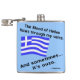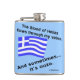 Flask calçado uma bandeira grega ondulando e lê: "O sangue de Hellas passa pelas minhas veias. E às vezes...é ouzo." Divertido por uma risada no Oxi Day ou a qualquer momento. A cor de fundo é azul. Ele pode ser alterado para qualquer coisa que você quiser usando a opção "editar design".