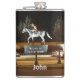 Estátua Dançarina Nativa De Cavalo Saratoga, Beba Flask. Fotografia. A estátua do Dançarino Nativo e o seu jockey Eric Guerin dão as boas-vindas aos visitantes de Saratoga, Primaveras de Nova Iorque. A estátua fica no Parque do Congresso, perto do Curso Saratoga Race.