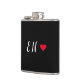 Um design de monograma minimalista com grandes iniciais tipográficas em uma letra de script com um coração vermelho em um simples fundo preto. O presente ou acessório perfeitamente personalizado!