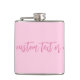 Texto cursivo personalizado, personalizado e personalizado, de cor simples e clara, de mês de consciência do câncer de mama de rosa claro sólido, de cor simples moderna, texto Vinyl Wrapped Flask. Texto de script cor-de-rosa totalmente personalizável no fundo de cor simples da rosa claro. Você pode escrever uma nota pessoal, uma citação ou frase favorita, um poema inspiracional, etc Excelente como presente, favor ou lembrança. Durante a Mês de consciência do câncer de mama em outubro e ao longo do ano, as pessoas vestem fitas cor-de-rosa para homenagear sobreviventes, lembrar-se dos que perderam a doença e apoiar o progresso que estamos a fazer para derrotar o cancer da mama.