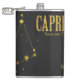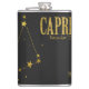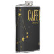 Aproveite a astrologia e os horóscopos? Tente um frasco com esta constelação de Capricórnio e informação de sinal de zodíaco. Ouro ondulado sobre estrelas pretas e sinal de estrela design elegante e divertido de carregar. Estes frascos fazem excelentes presentes de aniversário, dama de honra ou padrinho de casamento!