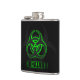 Este frasco negro apresenta o símbolo internacional do perigo biológico: o trifoil bioperigoso! Este logotipo está brilhando com uma misteriosa aura verde, assim como a palavra "BIOHAZARD" embaixo dela. O fundo apresenta uma representação maior do símbolo de risco biológico em cinzas escuras.
