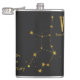Aproveite a astrologia e os horóscopos Tente um frasco com esta constelação de Virgem e informação de sinal de zodíaco. Ouro ondulado sobre estrelas pretas e sinal de estrela design elegante e divertido de carregar. Estes frascos fazem excelentes presentes de aniversário, dama de honra ou padrinho de casamento!