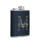 Simple Chic Script Metallic Navy Blue Gold Monogram Flask