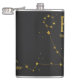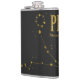 Aproveite a astrologia e os horóscopos? Tente um frasco com esta constelação de Peixes e informações de sinal de zodíaco. Ouro ondulado sobre estrelas pretas e sinal de estrela design elegante e divertido de carregar. Estes frascos fazem excelente aniversário, dama de honra ou padrinho de casamento!