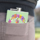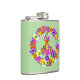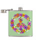 Um sinal de paz floral em tons de rosa, amarelo, laranja, roxo, verde, branco e preto.