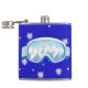 Eski Goggles com reflexo na montanha. Óculos de esqui e padrão de floco de neve em fundo azul. Design de inverno desportivo lúdico.