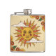 Este frasco de anca personalizado apresenta um design de celeste solar retroativo à frente, com borboletas vintage atrás.