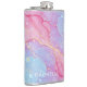 Um design de tinta abstrato a álcool sonhador com ondas correntes de matizes cor-de-rosa, púrpura e azuis com delicada veia de ouro e bolhas dispersas. Este trabalho de arte etéreo evoca a sensação suave e caprichosa de nuvens de algodão doce e céus mágicos, perfeito para acrescentar um toque de maravilha. Personalize com um nome.