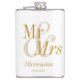 Sr. e Sra. Dourada Script Wedding Flask. Um presente perfeito para suas recém-casadas favoritas, casal e todos seus entes queridos. Fácil de personalizar. Pegue o seu hoje!