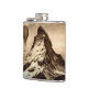 Um balão de ar quente estilo Steampunk flutua através da montanha Matterhorn. Arte digital na sepia