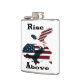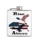 A icônica ascensão de águia careca acima do mapa das estrelas e listras famosas, América. Uma mensagem inspiradora maravilhosa nestes tempos.
