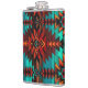Este Único "Um dos Tipos" Flask Sudoeste! Ele apresenta um belo Design sudoeste brilhante em turquesa, laranja e preto! Esta é uma Design gráfica do artista Kerry Miller.