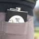 Este frasco de quadril afirma que o jazz está vivo com um saxofone amarelo ouro num círculo branco sobre fundo preto com o texto: Apoie Jazz, Bird Lives!