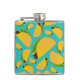 Ideias saborosos do presente do taco. Taco com queijo, queijo, tomates, alface, creme de leite e carne picada com um fundo de turquesa. O presente perfeito para amantes, cozinheiros chefe e cozinheiros do taco.