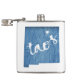 Localizado na base das montanhas Sangre de Cristo no alto deserto do Taos, o Novo México tem um resort de esqui de classe mundial e atividades intermináveis no exterior. Esta bela design é o mapa do Novo México com um padrão de madeira azul dentro e texto cursivo.