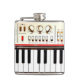 Uma imagem de um teclado elétrico velho do anos 80