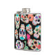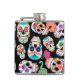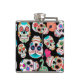 As imagens brilhantes dos crânios do açúcar fazem um teste padrão colorido nesta garrafa original e do divertimento. Há dez imagens diferentes do crânio, toda individuais em várias cores, e colocado em um fundo preto dramático. Há mesmo um cobra!