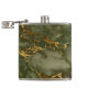 Este frasco elegante apresenta um padrão de mármore verde-oliva acentuado com veias de folha de ouro falsas.