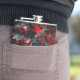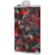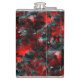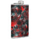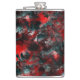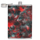Desenho grosso da arte gráfica em que o vermelho sofre um leve gradiente causando a percepção de algo torcido, especialmente quando contrasta com cinzas brancas e outras peças se chocam com pontos pretos causando uma percepção que lembra a sombra, parecendo partes das 'folhas vermelhas' flutuando ou distantes do chão.