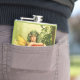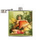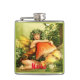 Fada loira de olhos azuis abraçando um grande cogumelo amanita para personalizar com sua própria saudação, nome, mensagem, etc