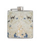 Camadas de tinta rachada e ferrugem em uma proteção de carro velha.