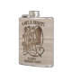 Este cantil fofo é perfeito como um presente para padrinho de casamento em uma despedida de solteiro. O design temático ocidental apresenta um gráfico de xilogravura com uma bota de cowboy e uma corda de laço formando um coração. O texto é impresso em letras vintage e diz: Tome um Tiro! Ele está dando o nó! Há espaço para o nome do noivo e a data do evento.