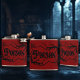 Traga seu próprio Frasco Venenoso. © Desejos do Coração Escuro. Este Flask tem um design com uma moldura de ramificações nele e a palavra Veneno dentro na moldura.