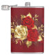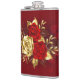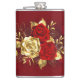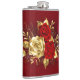 A composição de duas rosas vermelhas pintadas artisticamente e uma rosa ouro, decorada com ouro, folhas de joias sobre fundo texturizado.