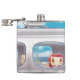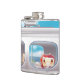 A garotinha junto com um gato olhando pela janela do trem.
